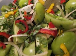 Зеленые помидоры с перцем по-корейски