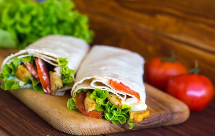И, наконец, вариант супербелкового обеда — ролл с курицей и фасолью. Возьмите 100 г консервированной фасоли, 50-100 г отварной неглубоко нарезанной курицы, немного красного лука и перца халапеньо. На лаваш выложите 2 ст. ложки йогурта без добавок, приправленного излюбленными специями, туда же отправьте начинку. Сворачиваем и наслаждаемся!