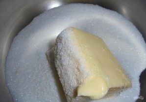 2. Блендером или венчиком взбиваю масло с сахаром до образования однородной консистенции.