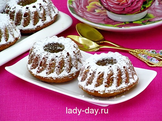 Готовые кексы остудить. При подаче можно присыпать сахарной пудрой.