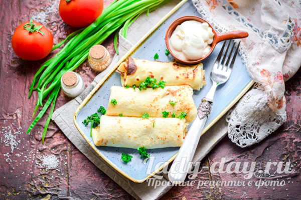Прогреть сковороду для приготовления блинов, смазать ее маслом. После небольшими порциями вливать в сковороду тесто и зажаривать блины с обеих сторон по полминуты. Готовые блины получаются невероятно вкусными, их сразу же можно подавать к столу.