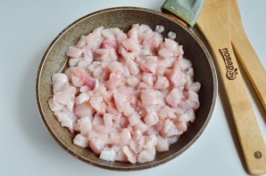 Куриное филе порежьте максимально неглубоко или пропустите через мясорубку. Обжарьте на растительном масле до готовности.