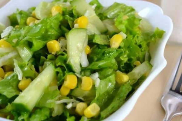 Летний салат с кукурузными зернышками, которые будут выглядывать из зеленой массы, как тонкие полевые цветы на лугу.