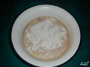 Сперва необходимо приготовить опару для теста. Для этого нагрейте молоко, но не доводите его до кипения. В молоко пошлите сухие дрожжи и три столовые ложки сахара и столько же мучения. Хорошо перемешайте опару и выдержите её около получаса.