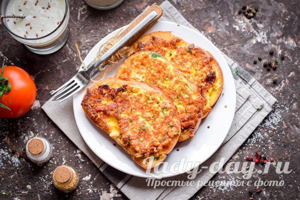 После ломтики батона перевернуть и подрумянить с обратной стороны – 1-1,5 минуты. Горячие бутерброды подавать к столу тут же.