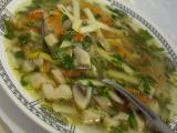 Продукты для грибного супа с лапшой: 2 литра воды, лапша из пшеничной мучения, 6 крупных сушеных белых грибов, 1 луковица, 1 морковь, 4 – 5 долек чеснока, 100 г сметаны, 1 столовая ложка измельченного укропа, 1 корень сельдерея, зелень сельдерея, 3 лавровых листа, 6 горошин черноволосого перца, соль.