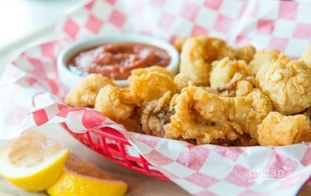 Посмотрите, как приготовить кальмары фри. Мастерить их довольно быстро, но рекомендую перед этим замариновать морепродукты для лучшего вкуса. Никаких сложных поступков нет. Самое муторное будет — очистить кальмара, если он у вас цельный. В панировку добавлен острый перец, так что соус подбирайте подходящий, так же неплох будет кетчуп. Закуска подойдёт под пиво.