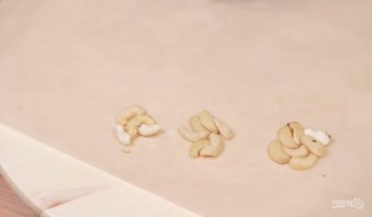 1. Для основы на пергаментную бумагу выложите небольшими кружочками орехи (плотно товарищ к другу). Это будет основа будущих конфет.