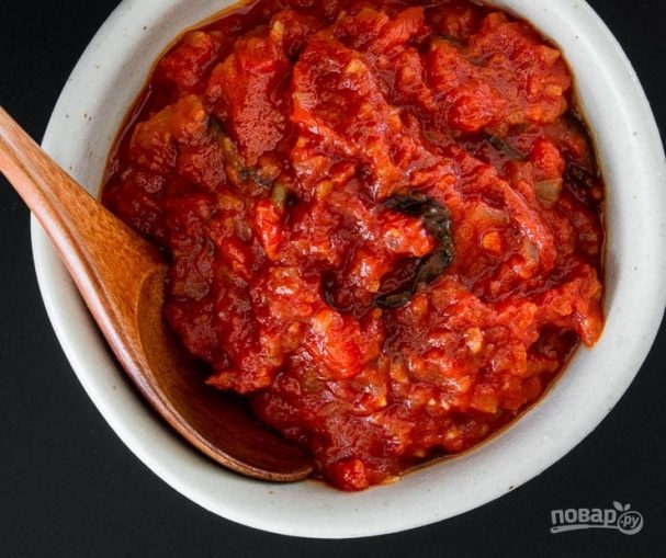 Можно приготовить вящую порцию соуса и хранить его в холодильнике. Блюдо можно стряпать в соусе или положить его только в тарелку перед подачей на стол. Можно регулировать его остроту или пикантность специями, чесноком, зеленью. Регулируйте консистенцию соуса, что зависит от поре его кипения. Свежий базилик можно заменить сушеным, но лучше поищите собственно свежий.