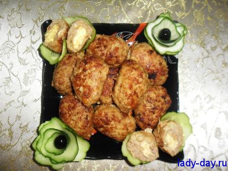 Самый несложный и самый вкусный рецепт приготовления домашних котлет. Мясные шарики с начинкой из влажна особенно нравятся детям, кушают они их с удовольствием. Я использовала в качестве начинки плавленный сырок, но вполне подойдет и сыр твердых сортов.