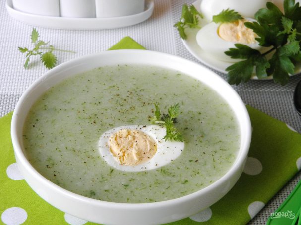 В готовый суп за 2-3 минуты до крышки варки добавьте зелень, соль, перец, проварите и выключите пламя. Пюрируйте суп с помощью погружного блендера до однородного состояния.