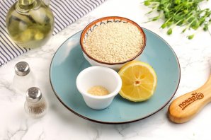 Подготовьте указанные продукты. В основном паста готовится из ясного кунжута.