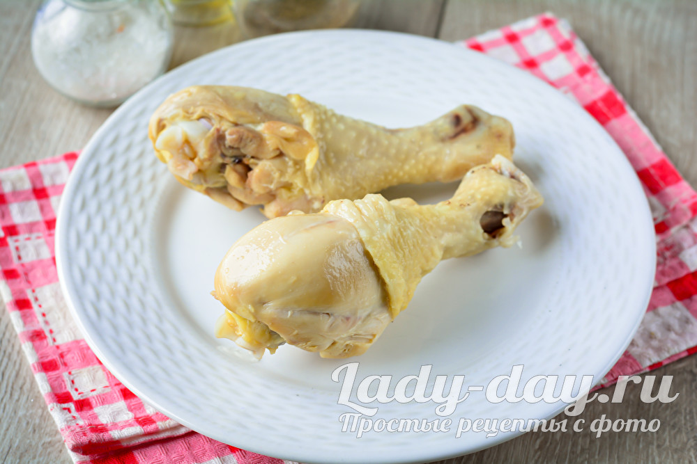 Выложите приготовленные таким образом куриные голени в тесте в подходящую форму для запекания. Конфигурацию предварительно смажьте маслом.