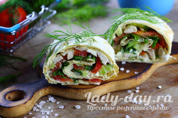 Лаваш с курицей и овощами рецепт с фото