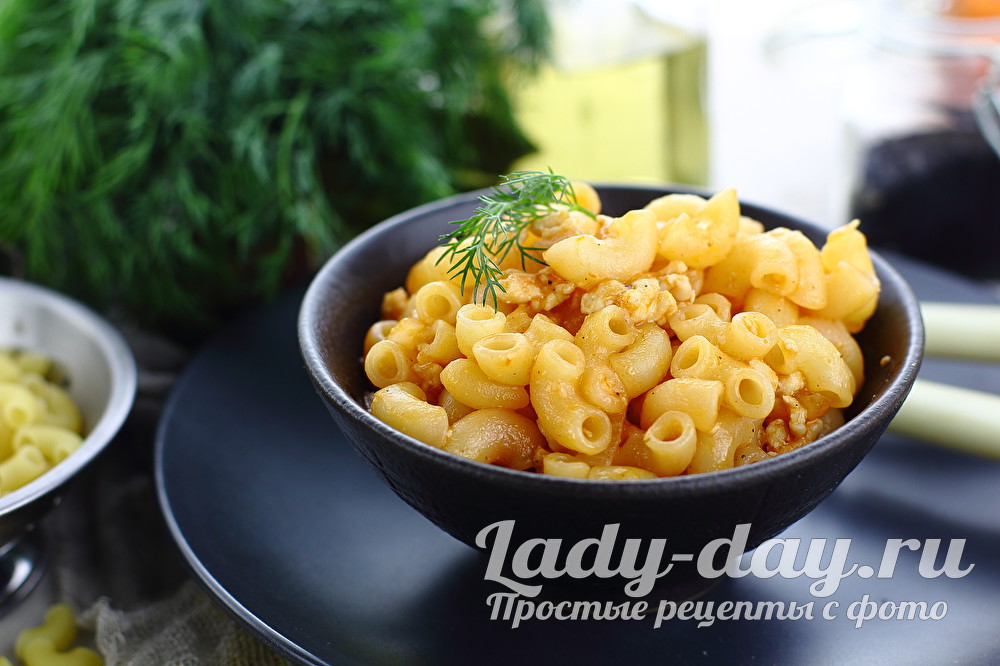 Рецепт макарон по-флотски с фаршем и томатной пастой на сковороде