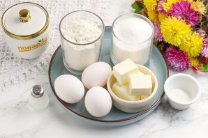 Подготовьте показанные продукты. Сливочное масло растопите заранее и оставьте для остывания при комнатной температуре.
