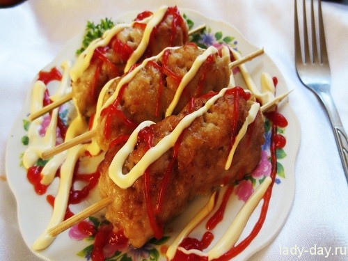Также котлетки можно украсить с поддержкой шпажек, аккуратно воткнув их в середину.