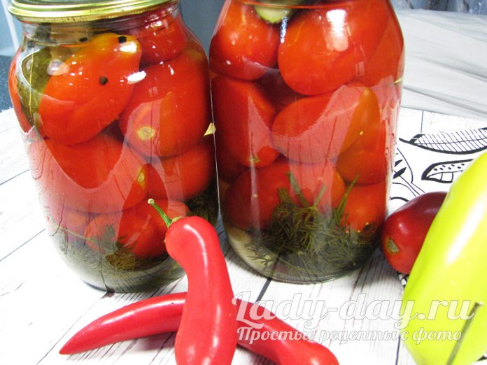 Очень вкусные сладкие помидоры, маринованные с чесноком на зиму