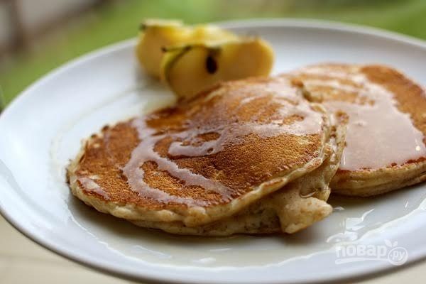 5. Жарьте оладьи без яиц с двух сторонок до румяной корочки. Подавать к столу их можно со сметаной, сиропом, медом, сгущенкой или попросту присыпав сахарной пудрой. Приятного аппетита!