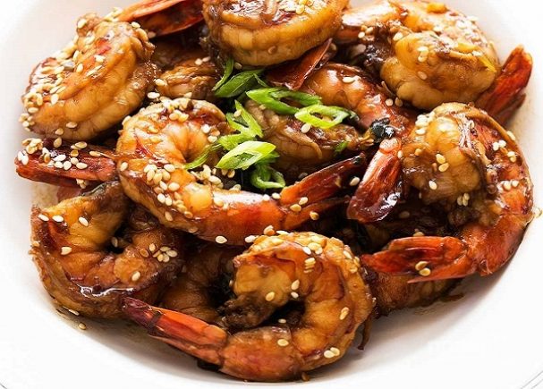 6. Перед подачей дополните креветки соусом, присыпьте зеленью и кунжутом. Симпатичного аппетита!