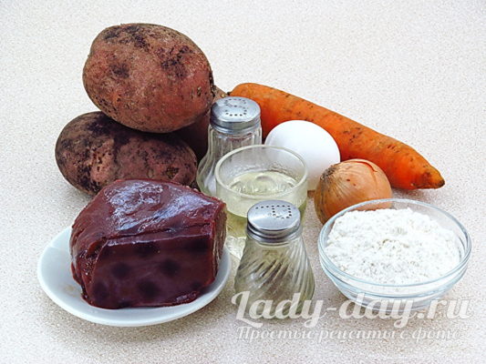В картофельную массу выложить тертую печень, морковь и лук, добавить яйцо, муку, соль и перец.