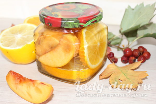 Консервированные персики в сиропе на зиму, с дольками апельсина и лимона. Весьма и очень вкусно!