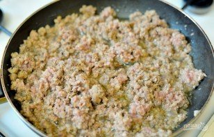 1. Говяжий фарш обжаривайте на среднем огне в течение 5 минут.