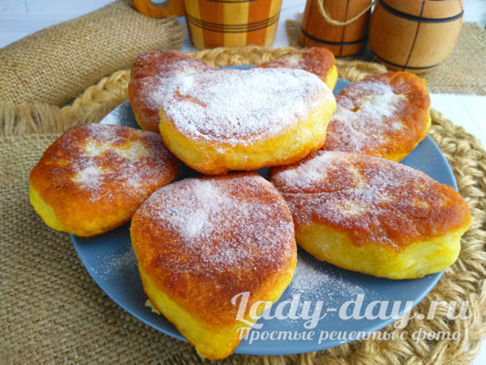 Готовые пирожки выложить на тарелку для подачи и при желании присыпать сахарной пудрой.