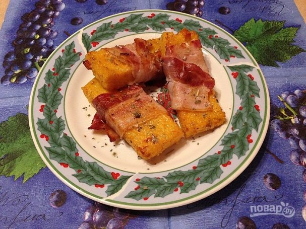 Это блюдо стоит приготовить! Брусочки кукурузной каши в благоуханном обжаренном беконе удивят вас и ваших родных своим вкусом. Это отличная идея для обеда или ужина, а еще это блюдо может быть закуской.