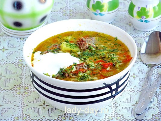 Рецепт рассольника c говядиной, перловой крупой и огурцами