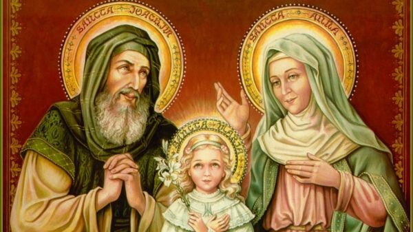 Предание гласит, что недосуг в Палестине проживала супружеская благочестивая чета по имени Иоаким и Анна. Их обеспеченность не мешало быть набожными, творить добро и посещать святилище. Однако у пары, преданной богу, до пожилого возраста не было потомства. Иоаким и Анна весьма сильно переживали, ведь бездетность в то время была анафемой.