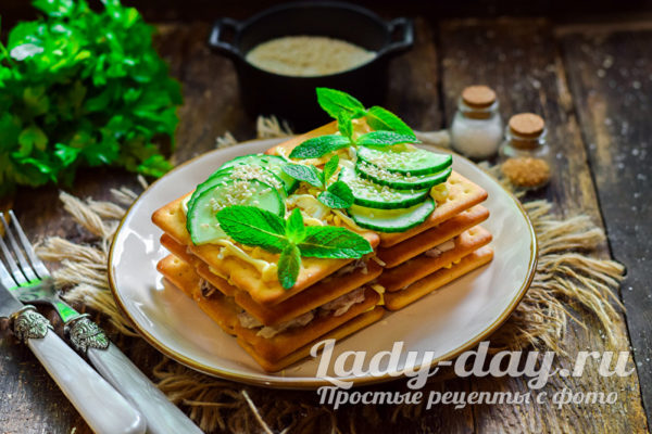 Как приготовить рыбный салат с крекерами