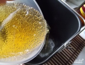 1. В конфигурацию от хлебопечки налейте пиво. Для данного рецепта идеально подойдет беспросветное пиво, но можно использовать и светлое.