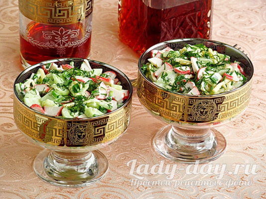 Салат с крабовыми палочками, свежими огурцами и сыром, рецепт с фото