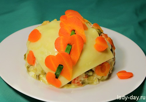 вареная морковь – 3 шт (2 в салат, одна для украшения);