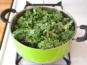 2 ст. ложки масла разогрейте в кастрюле с тучным дном. Добавьте в неё нарезанную капусту с водой. Тушите её в течение 5 минут, чтобы она сделалась мягкой.