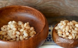 Отворите банку консервированной белой фасоли и слейте с нее лишнюю жидкость. Переложите четыре столовые ложки фасоли в блюдо для подачи.