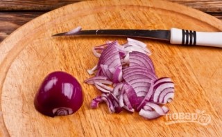 Из оливок вышлете косточки, если это необходимо. Разрежьте их на половинки или четвертинки.