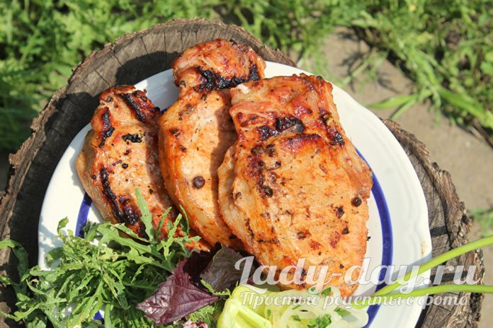 Самое лакомое свиное мясо на кости на мангале. Волшебный маринад из соевого соуса с медом и специями делают шашлык тающим во рту и весьма вкусным.
