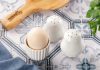 - Отварить вкрутую куриные яйца, очистить, изолировать желтки от белков. Желтки хорошо размять с помощью вилки, белки для этого блюда не потребуются.