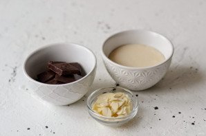 Перелейте сгущённое молоко в кастрюльку с тучным дном, добавьте шоколад. На небольшом огне растопите шоколад, постоянно помешивая. Масса должна стать однородной, гладкой.