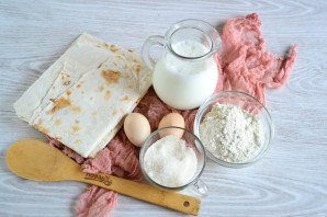 Займемся коржами. Из каждого листа лаваша вырежьте 2-3 кружочка. Очень удобно вырезать, обводя тарелку подходящего размера. Я избрала диаметр кружочков 20 см., и у меня получилось около 15 листов.