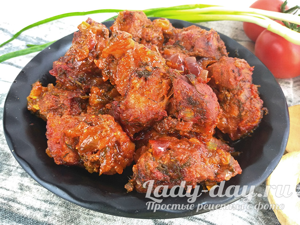 К тому же такое приготовление требует минимум усилий со стороны хозяйки, а результат получается великолепным. При выборе свинины рекомендую отдать предпочтение кусочку с прослойками сала. Перед запеканием мясо маринуется. Для маринада потребуется томатная паста и специи, которые можно корректировать по своему вкусу.