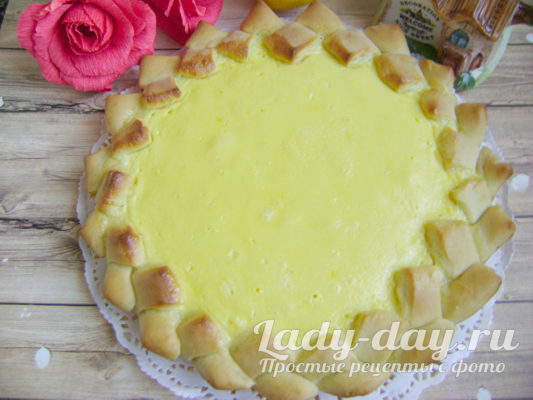Начинка сметанника заключается из густой сметаны и яиц. Если хотите добиться аппетитного яркого цвета выпечки, используйте деревенские яйца, какие имеют насыщенный цвет желтка. Для более яркого аромата в начинку можете положить ванильную эссенцию.