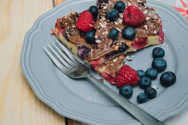 Сотейник разогреть, растопить немножко масла, влить тесто, сверху распределить ягоды черники, малины, земляники.
