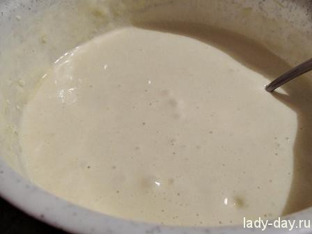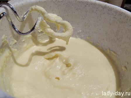 - Вспушить миксером до увеличения массы в объеме. Она должна быть воздушной, но не непременно держать форму.