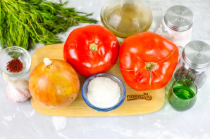Помидоры промойте в воде, вырежьте сердцевинки и натрите на терке. Кожуру удалите.