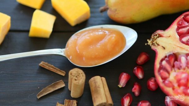 Несмотря на то, что основной ингредиент в блюде овощ, он всё-таки имеет сладкий вкус, потому к нему бывальщины добавлены фрукты. Они здесь сочетаются идеально. Вам будет здорово узнать о том, как приготовить тыквенное пюре для детей с грушей и гранатом, если вы разыскиваете варианты пюре для своего чада. Да и вам блюдо тоже понравится.