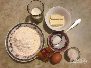 1. На фото ингредиенты, какие потребуются нам для приготовления сдобного дрожжевого теста.
