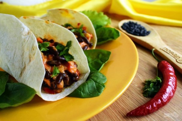 Буррито или бурритос — популярное мексиканское блюдо с различной начинкой, пуще всего с мясной. А вы добавьте в начинку полезную черную фасоль — и получите лакомый вариант вегетарианского буррито.